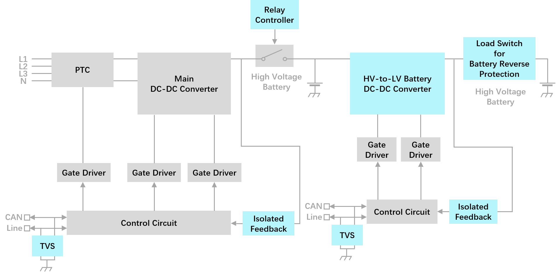 µçÍøÖеĽ»Á÷µçͨ¹ý½»Á÷³äµç×®Ö±½Ó¸ø³µÔسäµçÆ÷ (OBC) ¹©µç£¬£¬£¬£¬£¬OBC °Ñ AC ת»»³É DC£¬£¬£¬£¬£¬È»ºóͨ¹ýÅäµçÏäΪ³µÄڵ͝Á¦µç³Ø³äµç¡£¡£¡£¡£¡£¡£Ö±Á÷³äµç×®Ôò°üÀ¨Ðí¶à AC-DC µçÔ´Ä£¿£¿£¿£¿£¿£¿£¿é¡£¡£¡£¡£¡£¡£´ÓÏÖÔÚ³äµç×®Êг¡µÄ״̬À´¿´£¬£¬£¬£¬£¬ÓÐ 3 ´óÇ÷ÊÆ£º¿í¹æÄ£µÄºã¶¨¹¦ÂÊ¡¢¿í¹æÄ£µÄÊä³öµçѹ¡¢¸ü¸ß¹¦ÂʵÄÄ£¿£¿£¿£¿£¿£¿£¿é¡£¡£¡£¡£¡£¡£ Á½¸öÖ÷Òª¹¦Âʼ¶¡£¡£¡£¡£¡£¡£Ê×ÏÈ£¬£¬£¬£¬£¬¹¦ÂÊÒòËØÐ£Õý (PFC) ¼¶£¬£¬£¬£¬£¬¼á³ÖÊäÈëµçÁ÷ºÍµçѹ֮¼äµÄÏàλ¹ØÏµ£¬£¬£¬£¬£¬×î´óÏ޶ȵØïÔÌÏß·/µçÍøµçÁ÷µÄ×Üг²¨Ê§Õæ (THD) ¡£¡£¡£¡£¡£¡£ÕâÓÐÖúÓÚïÔÌÈÎºÎÆÌÕŵÄÎÞ¹¦¹¦ÂÊ£¬£¬£¬£¬£¬Ìá¸ßÕûÌåÄÜЧ¡£¡£¡£¡£¡£¡£ µÚ¶þ¹¦Âʼ¶ÊÇ DC-DC ת»»Æ÷£¬£¬£¬£¬£¬Ëü´Ó PFC ¼¶»ñµÃ DC Êä³ö£¬£¬£¬£¬£¬²¢½«Æäת»»Îªµç³Ø³äµçËùÐèµÄµçƽ¡£¡£¡£¡£¡£¡£×ª»»Æ÷µÄÊä³öµçѹºÍµçÁ÷»ùÓÚµç³ØµÄÕûÌ念½¡×´Ì¬ºÍ³äµç×´Ì¬ËæÊ±¼äת±ä¡£¡£¡£¡£¡£¡£ ÆñÂÛÊǹ¦ÂÊÒòÊýУÕý£¨PFC£©¡¢Ô±ß²à DC-DC¡¢»ò¶þ´ÎÕûÁ÷£¬£¬£¬£¬£¬ÓŵÂ88¾ãÀÖ²¿ÖÐÎĹÙÍø¶¼¾ßÓÐÏìÓ¦µÄ½â¾ö¼Æ»®£¬£¬£¬£¬£¬Æû³µÏµÁвúÆ·º¸Ç¶þ¼«¹Ü¡¢MOSFET¡¢TVS µÈÖݪֲúÆ·¡£¡£¡£¡£¡£¡£ºÃ±È£ºÕûÁ÷£«LLC ×é³ÉÁ˳äµç×®µÄ»ù±¾µç·£¬£¬£¬£¬£¬¿É½ÓÄÉ FRED£¨¿ì»Ö¸´¶þ¼«¹Ü£©¼Æ»®£»£»£»£»£»£»£»CAN ͨѶ¿ÚµÄ ESD ±£»£»£»£»£»£»£»¤¡£¡£¡£¡£¡£¡£